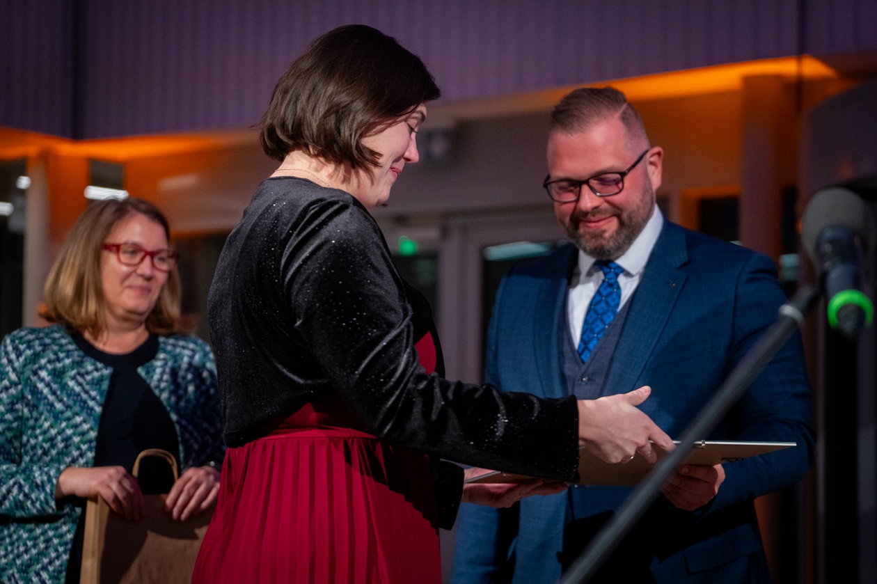 Helga BORSOS-VÁLI ,Emerging Excellence” Award-winning Coordinator (m) Richárd BODROGI, Director-General, Tempus Public Foundation (TPF) (r)